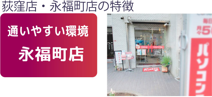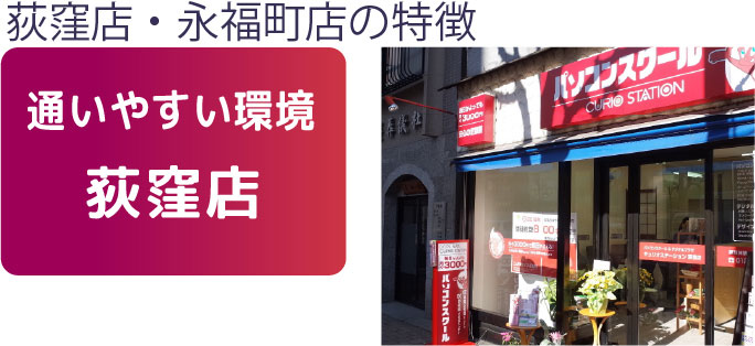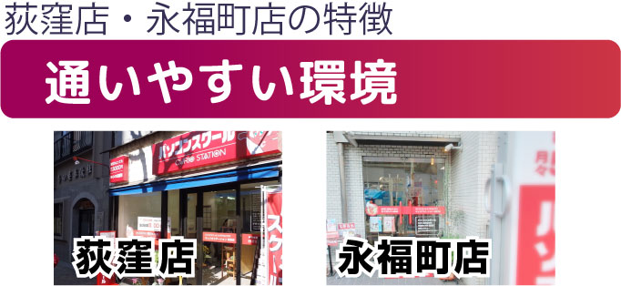 荻窪駅から徒歩5〜6分、青梅街道沿い・杉並公会堂前の路面にある教室です。