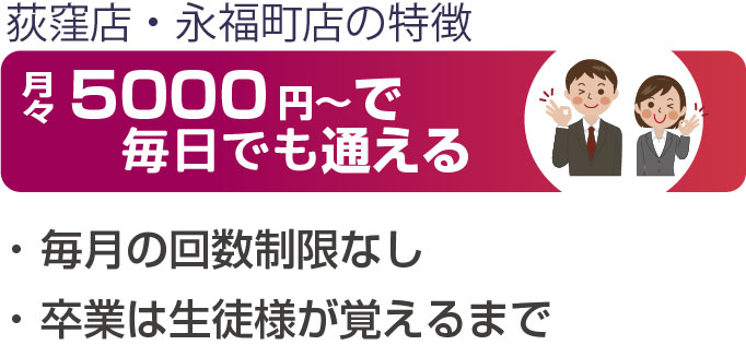 月々5,000円から毎日でも通える安心の定額制を採用しています。
