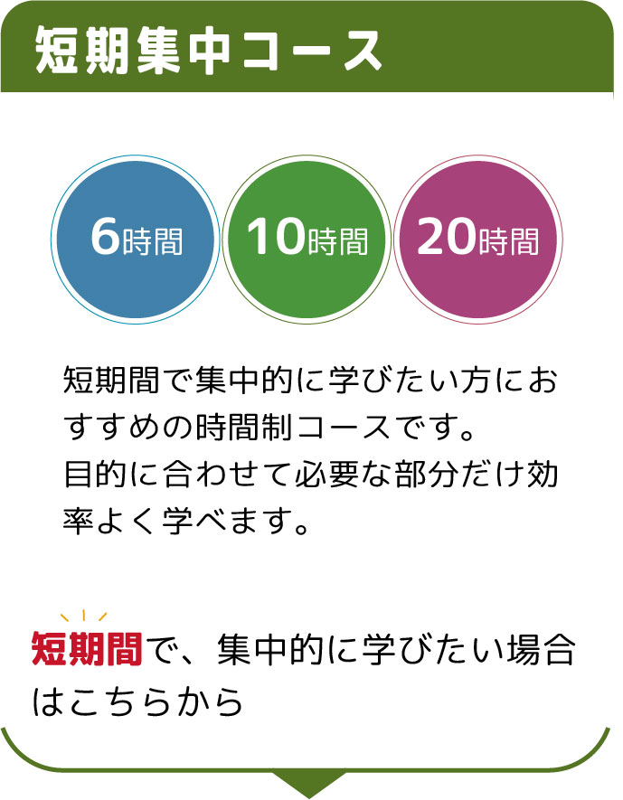 自分のペースでじっくり学びたい方も、短期間で早く習得したい方も、どちらのニーズにも対応。