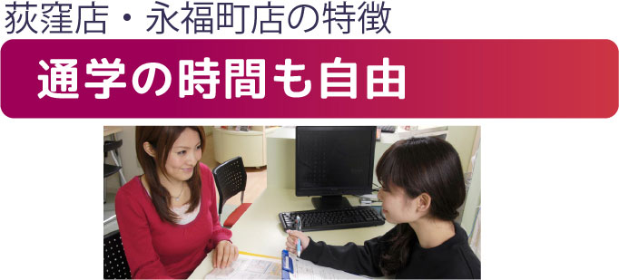 仕事や家事、学校の予定に合わせて、都合のよい時間に通うことができます。