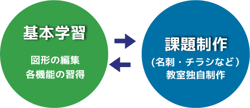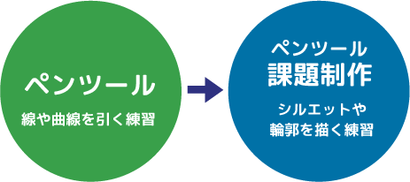 イラストやロゴなど、実際の制作課題に取り組みながら、学んだ内容を実務や趣味のデザインに活かせる力を養います。