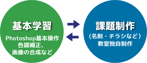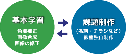 選択ツールやマスク、調整レイヤーなどの応用的な機能を駆使し、名刺・チラシ・Web素材などをプロ仕様で仕上げられる力を養います。