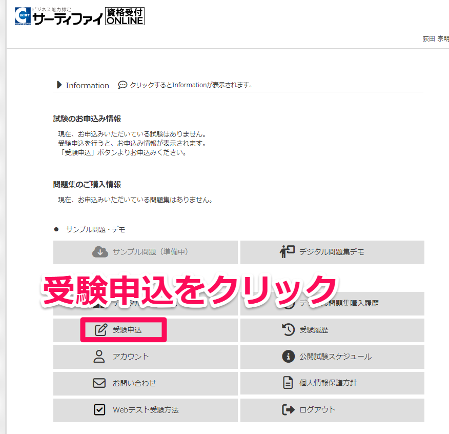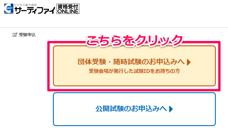 資格受付オンラインから試験の申し込みを行います