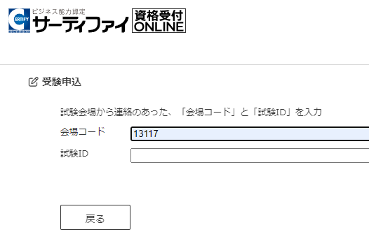 メールで送信した試験IDを入力して次に進んでください。