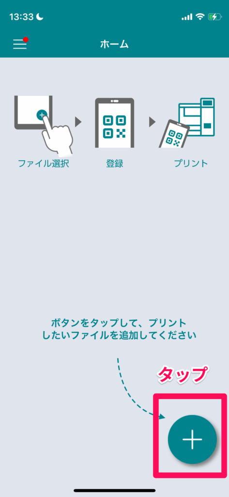 Step7:右下の「+」ボタンをタップして、印刷したいファイルを選択