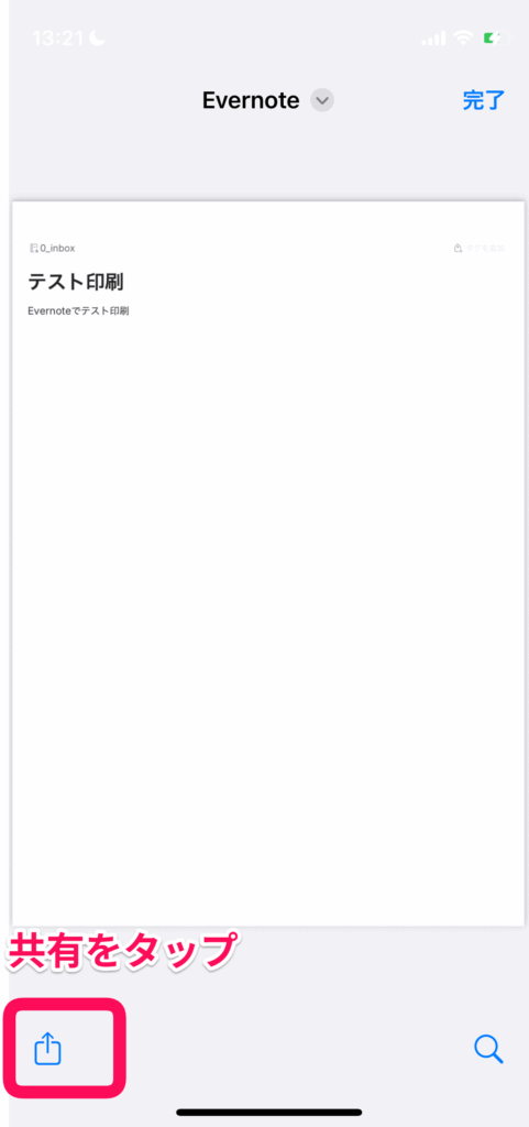 Step5:印刷画面が開いたら、左下の「共有」アイコンをタップ