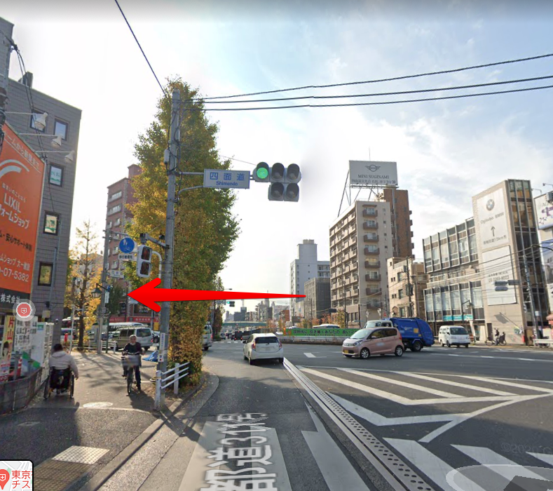 井草方面から:四面道交差点を左折することろがポイントです。