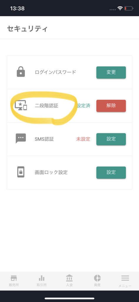 ビットバンクの二段階認証解除方法(iPhone)
