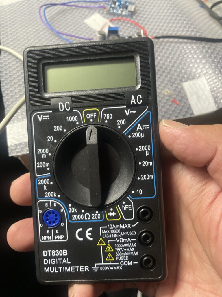 測れますよ、ダイヤルを DCV20 に合わせて、