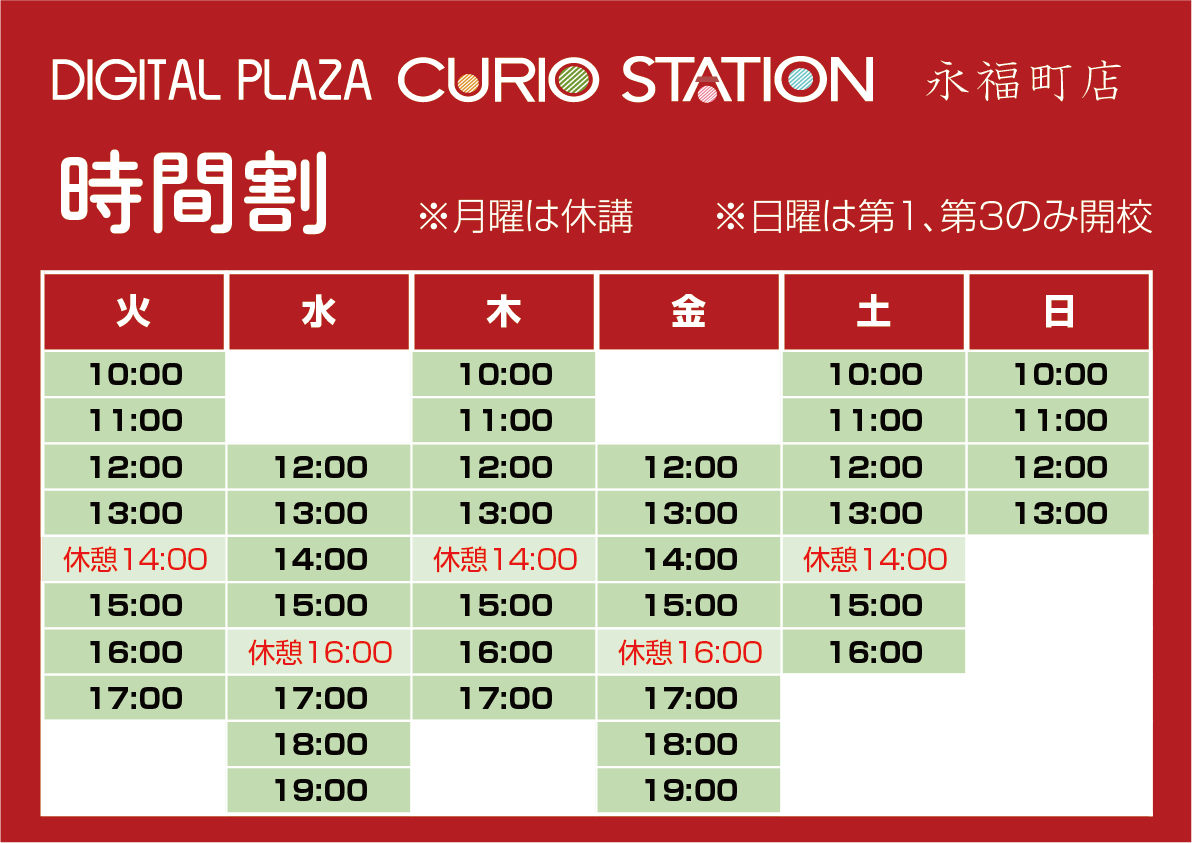 • 火曜日、木陽日: 10:00~18:00