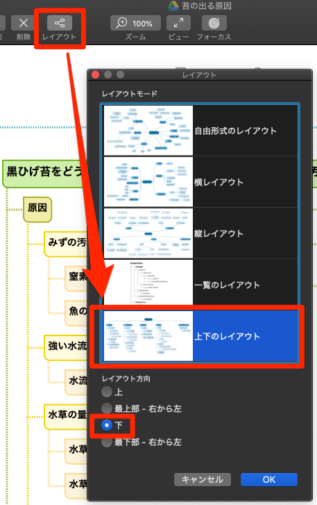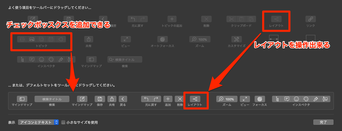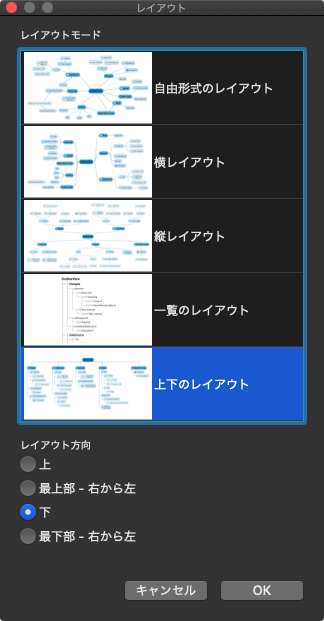 注意:レイアウトを変更するには一番上のトピックを選択しておくことが必要です。