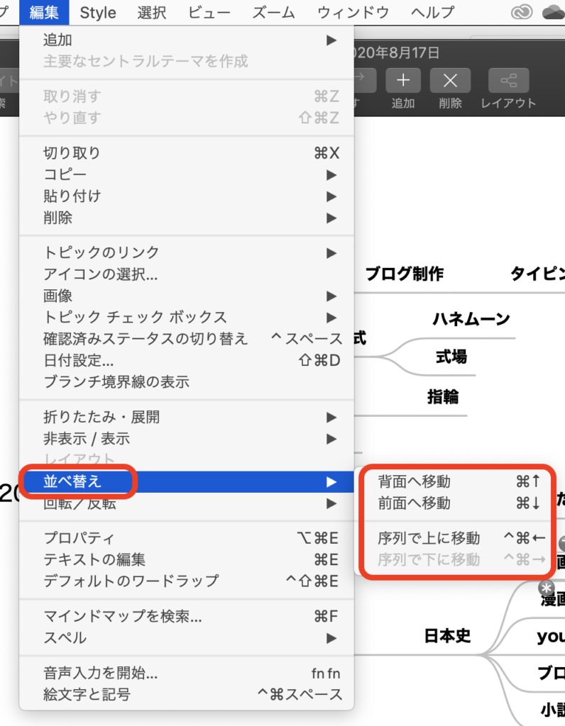 | トピックの階層を上げる、下げる | コマンド+control+左右キー |