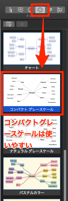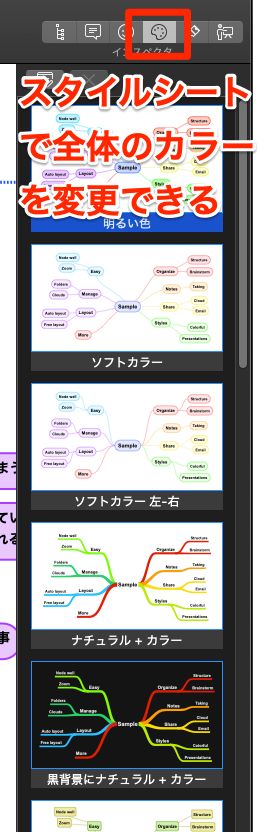 SimpleMindはマップのスタイルをいろいろ指定できます。