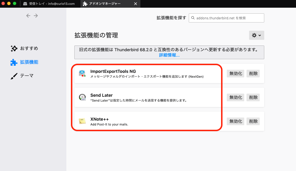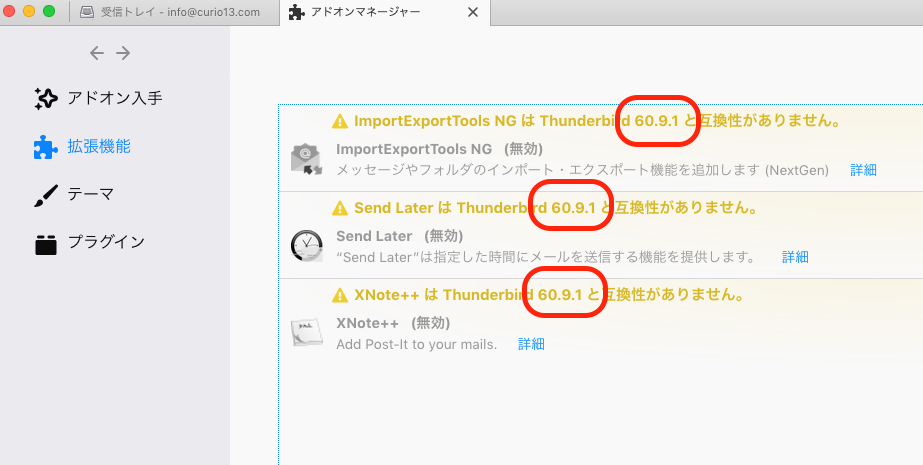 Thunderbirdはバージョンアップするとアドオンが使えなくなる場合が多いので注意!