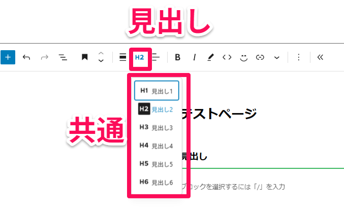 H1やH2の見出し設定はほ有料、無料問わず、ほとんどのテーマにも共通してあります。