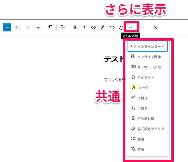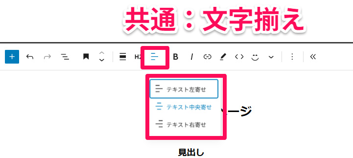 ブロックエディタでは、選択した部分に対してツールが表示される仕様に変わったので、