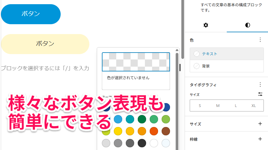 文字を選択すると、テキストの色や、背景色、サイズなど様々な修正ができるようになります。