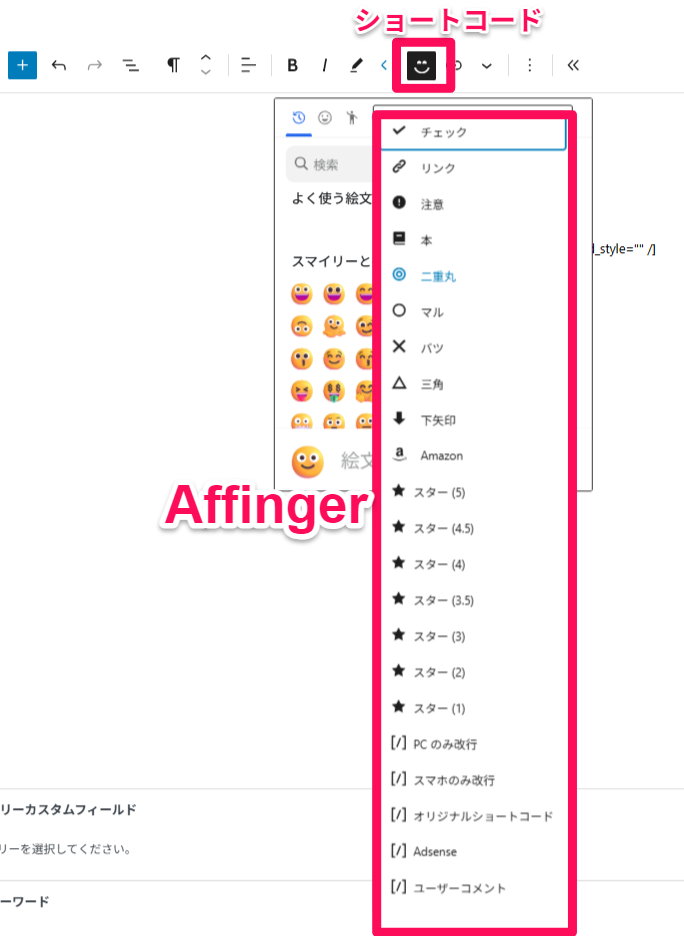 ショートコードはAffiger独自の機能になります。