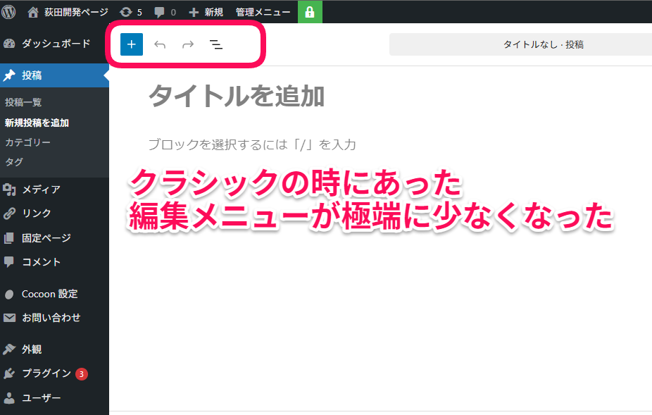 せんせい、新しいWordPress(5以降)のブロックエディタ、