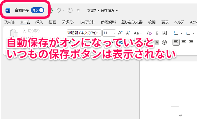 最近のWordは「クラウド保存」っていう仕組みが増えていて、自動で保存されるんだ。