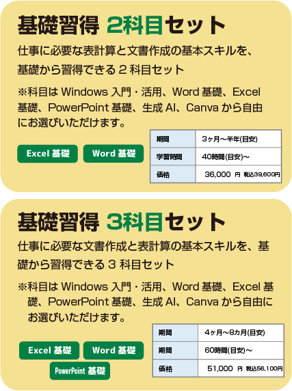 下記のセットの他にも基礎と応用を組み合わせたセットなど多数用意しております。詳しくはお問合せください。