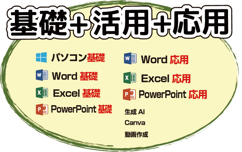 ●職場で「一般的なパソコン作業ができます!」と言えるスキルが身につく。