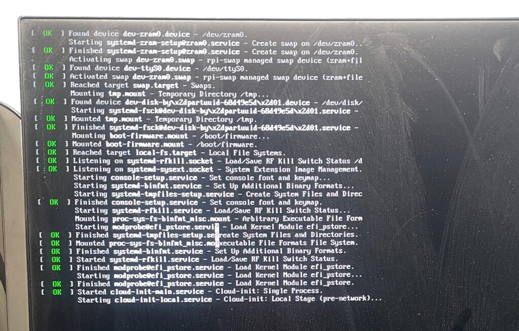 初めて見るラズパイの起動画面