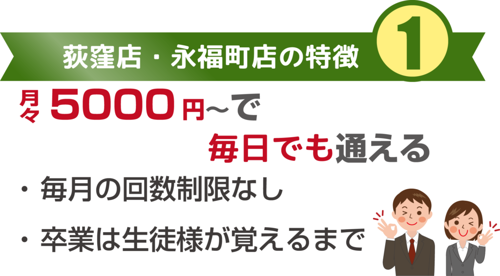 1番の特徴は月々何回通っても定額(5000円~)で好きなだけ通えるところ。しかも映像学習ではなベテランのインストラクターが直接指導をしているので、しっかりと覚えられます。